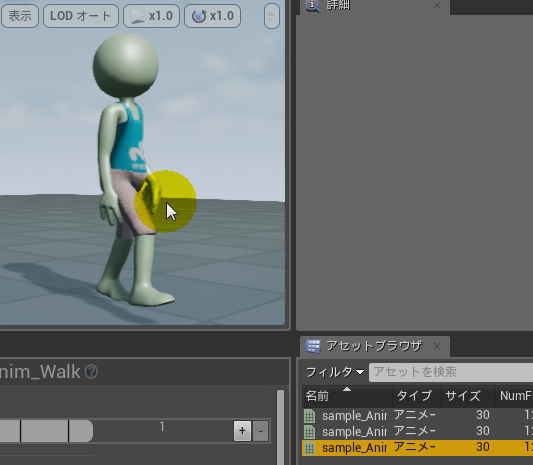 ではインポートで出力したFBXを読み込んだら、マテリアル読み込みプラグインでマテリアルファイルを読み込みます。マテリアルファイルを読み込んだら、SimpleGuyへと適用します。アニメーション情報もマテリアルも正しく読み込まれたのが確認できます。