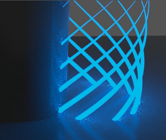 カメラに可視オプションをオンにすると、光源であるカーブ自体もレンダリングされ、かつこのカーブのポリゴンからも光が放射されるようになります。シーンには床と円柱、そして円柱のエッジから抽出されたカーブのみですが、面白い効果をすぐにでも表現することができます。
