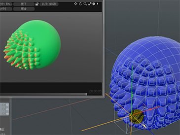 マテリアルのグラディエントを重ねて設定してみると、一つのロケータで形状の変化とマテリアルの変化とを同時にコントロールすることができるようになります。