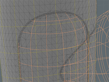 では今度は、サーフェイスストリップ適用カテゴリにある左から2番めのボタンをクリックしてみます。先ほどと同じような筋ができましたが、この場合、交差部分のストリップの形状が異なります。前者は交差部分がグリッドになり、後者は交差部分が対角線に対して分割されています。この後でメッシュをどのように加工するかによって、より適している方の分割方法を選択してください。