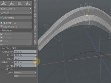 このように、Curve Sweepでは、従来のCurve Extrudeでは実現が難しかったカーブで押し出しの細やかな処理が可能になっています。