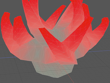 こちらのサンプルシーンには、モーフマップがひとつ設定されたメッシュが用意されています。このメッシュのつるの先端部分からモーフの変形が行われるよう、ウェイトのメッシュオペレーションを使って設定していきます。