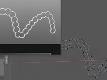 またこちらもプロシージャルモデリングですので、組み合わせたカーブに対して、さらに面を作ってポリゴンを押し出すといった処理が可能になります。