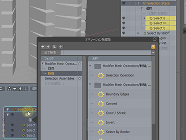 このように、選択オペレーションは複数の選択オペレーションを一つにまとめることで、それを整理しておけるだけでなく、複数メッシュに対して同じ選択条件を適用したい場合などにも有効に使えます。