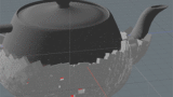このプリミティブスライスツールは、プロシージャルモデリング版でも同じ操作が行えます。サンプルとなるシーンでは、プリミティブスライスオペレーションを複数重ねることで、全軸に対して処理が行われていたり、またはプリミティブの半径の値や、複製のオフセット値をアニメーションさせることで、形状が変わっていくようなメッシュアニメーションを設定できます。