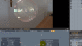 このままだとパーティクルがボールをすり抜けていくため、ボールの中にパーティクルがとどまるよう、まずボールのアイテムを選択し、ダイナミクスのタブからスタティックリジッドボディを適用します。その後、パーティクルのタブへと移り、ダイナミクスコライダーを適用したら、シミュレーションを行います。デフォルトではボールの衝突シェイプが外殻になっているので、メッシュへと変更しておきます。それでもすり抜けるようであれば、マージンの値を高めに設定します。