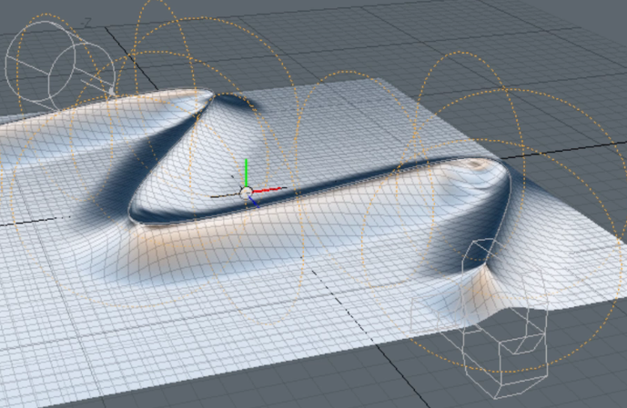 距離によるフォールオフのグラディエントを調整することで、カーブにそってメッシュのエッジを立たせたり、またはゆるやかに変化させることができます。