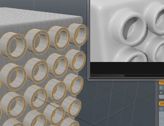 まずはXYZ全てセグメント数21の立方体を作ります。これからこの一面に対してロゴブロックのように、円状の突起を作っていきます。まずはポリゴンを選択し、選択したポリゴンは選択セットで保存させておきます。ポリゴンを保存したら、Ctrlキーを押しながらエッジボタンをクリックし、選択したポリゴンの境界を選択します。この境界を円状に整列させます。