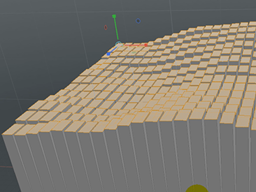 このやり方では、一つのツールだけで簡単に高さの違うボックスを作ることができますが、一つ一つのポリゴンに対して適用されるポリゴンのシフトの値がランダムに異なるため、なめらかな連続性といったものはありません。