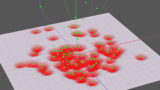 またもう一つの手法では、衝突フォースを使うのですが、トランスフォームによるちょっとしたトリックを使います。デフォルトの状態ですと、やはり開始時点で衝突を検知し、そのままダイナミクスの演算が開始されてしまいます。この場合、大切なのはパーツ間に隙間を作るということですので、組み合わせているパーツのスケールを小さく設定してみます。パーツをすべて選択し、トランスフォームのスケールの値を40%ほどに落とした状態で、シミュレーションを行ってみます。満足がいく動きを得られたら、逆にスケールの値を100%に戻します。100%の大きさで正しいシミュレーションした結果ではないため、床や壁にめり込んだり、パーツ同士がめり込んだりといったことがありますが、大体の動きを疑似的にダイナミクスで計算させて、あとから修正を施すといった場合には便利に使える手法です。