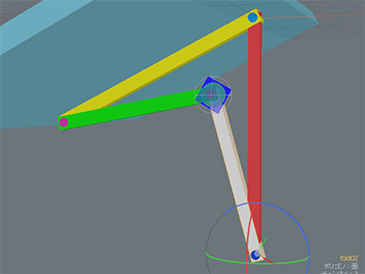 この設定を行うと、自動的にIKゴールのロケータが作成されます。このロケータに対しても見やすい表示に変えておきましょう。このゴールアイテムを動かしてみると、自動的に柱も動くようになっています。