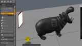 では先ほどのシーンへと戻りましょう。こちらのメッシュには厚みがつけられていませんでしたので、厚みツールで厚みを付けて行きます。モデリングツールバー > ポリゴンタブにある厚みツールを起動し、ビューポートをドラッグして厚みを付けます。そうすると先ほどまでは見えてなかったメッシュ内部のライトの表現が見えるようになってきました。SSSの色やスキャッタリング距離、最大深度などを調整することで、よりリアルな表現が可能になってきます。