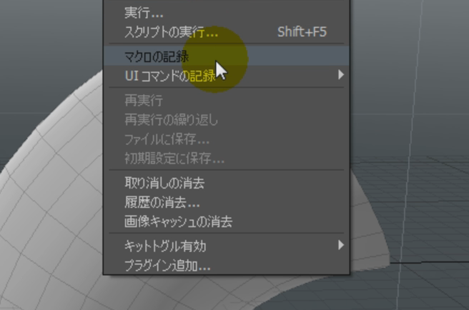 このマクロはMODOの各セッション、つまり起動してから終了するまでの間、使えるものですが、ファイルに保存することで、後から何度でも利用することができます。オプションボタンをクリックしファイルを保存をクリックすると、ファイルとして保存できます。ファイルとして保存したマクロはスクリプトと同様、システムメニュー > スクリプトの実行で実行することができます。