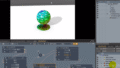 サンプルとなるシーンには、シーンの中心に球体が配置されており、それを取り囲むように内側を向いた円柱が配置されています。この円柱には、グラデーション上の画像が貼り付けられています。ただし、円柱はあらかじめアイテムシェーダが設定されており、表示属性としてカメラから映ることなく、また影や落としたり、影を移すことがないよう設定されていますので、この時点では球体には全く影響を及ぼしていません。