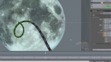 ここでフォールオフによって、この落下の動きを特定のパーティクルのみに限定するようにします。リニアフォースを選択した状態で、Radial Falloffを追加します。この放射状のフォールオフの内部にある頂点に対して影響を及ぼすようにしたいので、フォールオフの大きさを調整し、アニメーションを設定します。通常、Radial Falloffの中はグラディエントに影響範囲の強さが設定されていますが、今回はこの球体の中に入っているのか入っていないのかをくっきりと切り替えたいので、ソリッドコアの値を100%にしておきます。ではシミュレーションして結果を確認してみます。するとラディアルフォールオフが通過した個所のパーティクルのみが落下するようになりました。