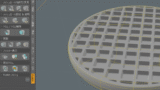 網目のメッシュを、このUVメッシュの内側にきっちりと入るようにスケールをかけます。あとはメッシュオペレーションのタブからオペレータ追加 > デフォーム > UV Transformを追加します。ターゲットメッシュをマイクヘッドのメッシュ、UVマップをTextureに設定してOKボタンを押すと、網目のメッシュがマイクヘッドの形状に丸まったのが確認できます。