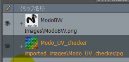 しかしMODOのプリセットを使っていると、コンテンツフォルダの中にある環境マップや画像を使うことも多いでしょう。例えば、プリセットを開き、コンテンツから画像をマテリアル上へとドラッグアンドドロップし適用します。そうすると、この画像はコンテンツフォルダの中にあるもので、プロジェクトフォルダ外から持ってきた画像ということになります。クリップリストを見てみると、フルパスで表記されているのが確認できます。