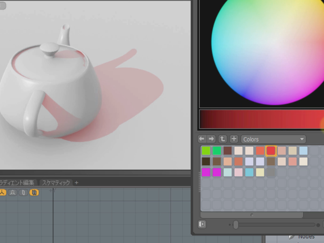 デフォルトではRGB(0,0,0)の黒になっていますが、試しにこれをグレーから白色へと変更してみると、影が薄くなり、完全な白色では影が表現されなくなったのがわかります。つまりこの色の値をマイナス方向に修正すれば、逆に影を濃く表現することができそうですが、RGBとも0.0より小さな値を設定することはできません。