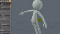 では腰から上へとスケルトンを作っていきます。腰のスケルトンは頭とお尻のところで二点青いマークがついています。頭の部分の青いマークをクリックすると、黄色いハイライト状態になり、ここからさらにスケルトンを作っていくことができます。背骨から頭に向ってスケルトンを組んでいきます。
