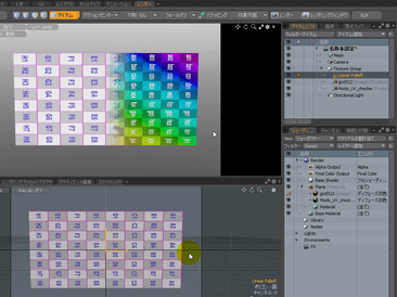 これをフォールオフアイテムを用いて切り替えます。テクスチャの画像は、マッピングされると同時にシーンの中にそのテクスチャの位置や回転、サイズなどをコントロールするためのロケータが自動的に追加されるようになっています。このテクスチャロケータとフォールオフを組み合わせます。アイテムリストのアイテム追加FalloffカテゴリからLinear Falloffを追加します。